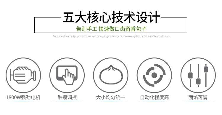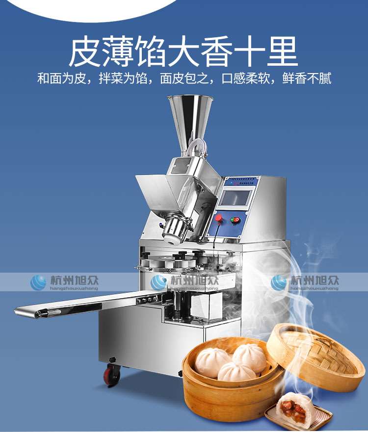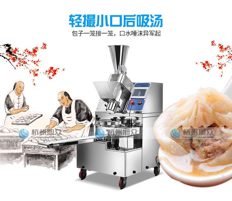 XZ-87型全自動(dòng)包子機(jī)體積小重量輕,不銹鋼的外殼及食品接觸面,外觀精美,花紋更多,設(shè)計(jì)先進(jìn),生產(chǎn)性能穩(wěn)定精準(zhǔn),結(jié)構(gòu)簡(jiǎn)單,操作方便??缮a(chǎn)各種肉包、肉菜包、菜包、小籠包、湯包、水晶包、圓饅頭、奶黃包、豆沙包、叉燒包、南瓜餅等幾十種包餡制品。