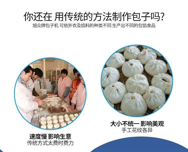 XZ-87型全自動(dòng)包子機(jī),可生產(chǎn)各種肉包、菜包、肉菜包、小籠包、湯包、水晶包、圓饅頭、奶黃包、豆沙包、叉燒包、南瓜餅、煎堆等十幾種包餡制品。適用于賓館、飯店、學(xué)校、機(jī)關(guān)企業(yè)食堂、饅頭或包子加工廠、早餐工程店及速凍食品廠等單位。可滿足不同客戶群體。免費(fèi)提供工藝技術(shù)。免費(fèi)上門培訓(xùn)指導(dǎo)安裝。