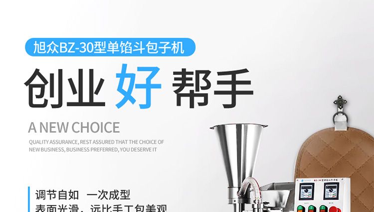 ◆ 旭眾牌BZ-30全自動小型包子機采用雙變頻控制,面、餡大小調(diào)節(jié)自如、使用方便。產(chǎn)品一次成型,所出產(chǎn)品外形大小統(tǒng)一、表面光滑、花紋整齊,遠比手工包美觀。