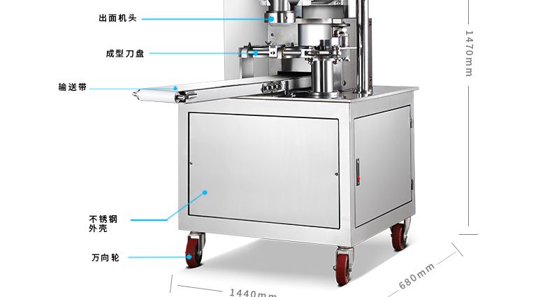 ◆ 結(jié)構合理,成型、進餡、進面與控制面板均由獨立電機帶動不易發(fā)生連帶故障,且維修及拆裝清洗方便。