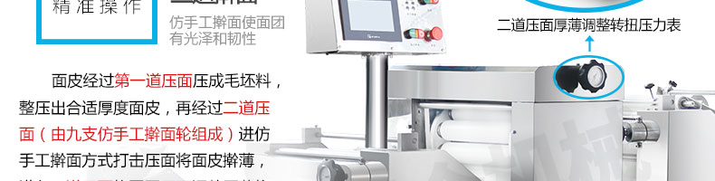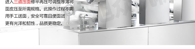 ◆ 產(chǎn)品的面帶經(jīng)過多道壓面工藝,一步步提高筋度和密度,從而提高咀嚼口感;