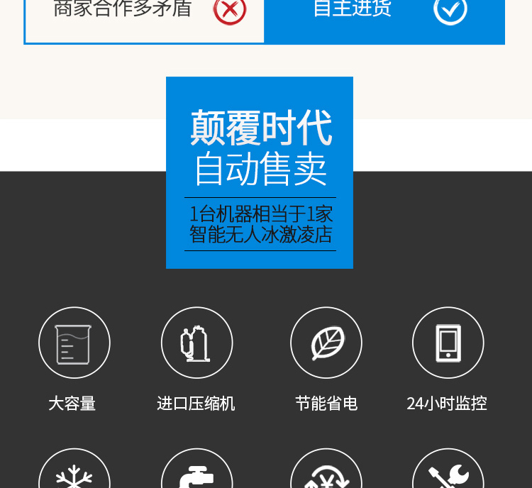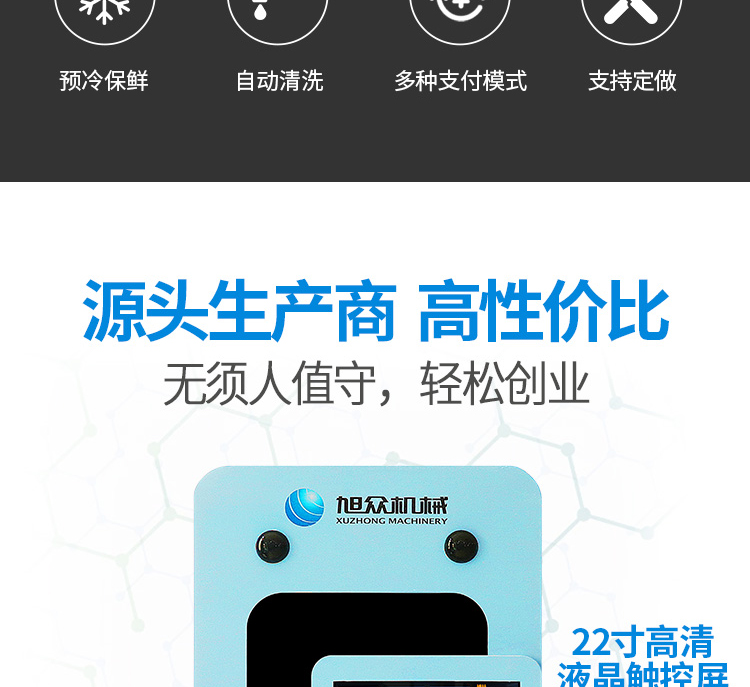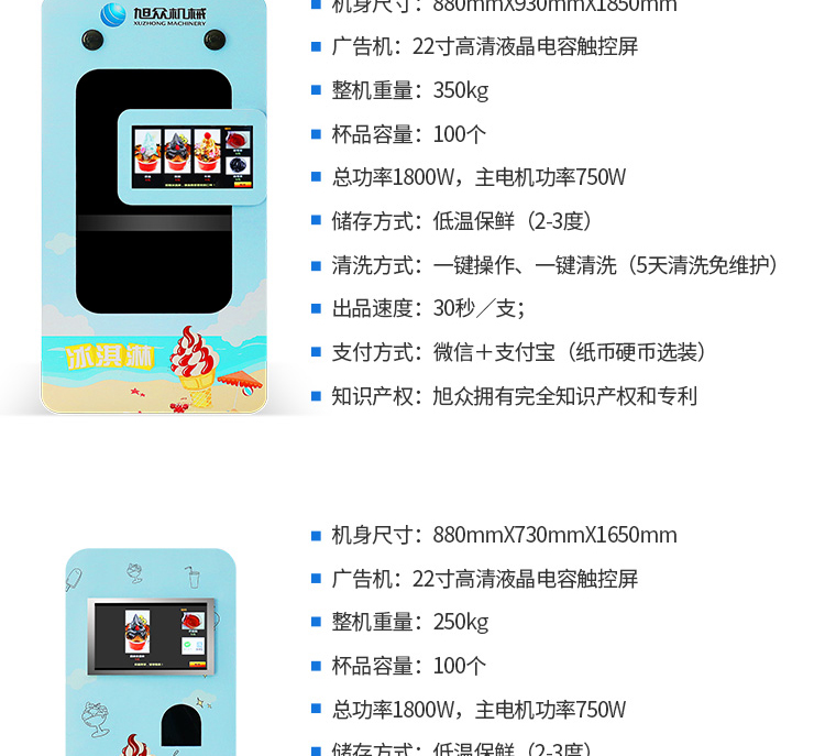 名稱XZ-QZD-01自動(dòng)售賣冰淇淋機(jī) 電源 功率1.8kw 產(chǎn)量 尺寸880×930×1850mm 重量350kg 規(guī)格 其他
