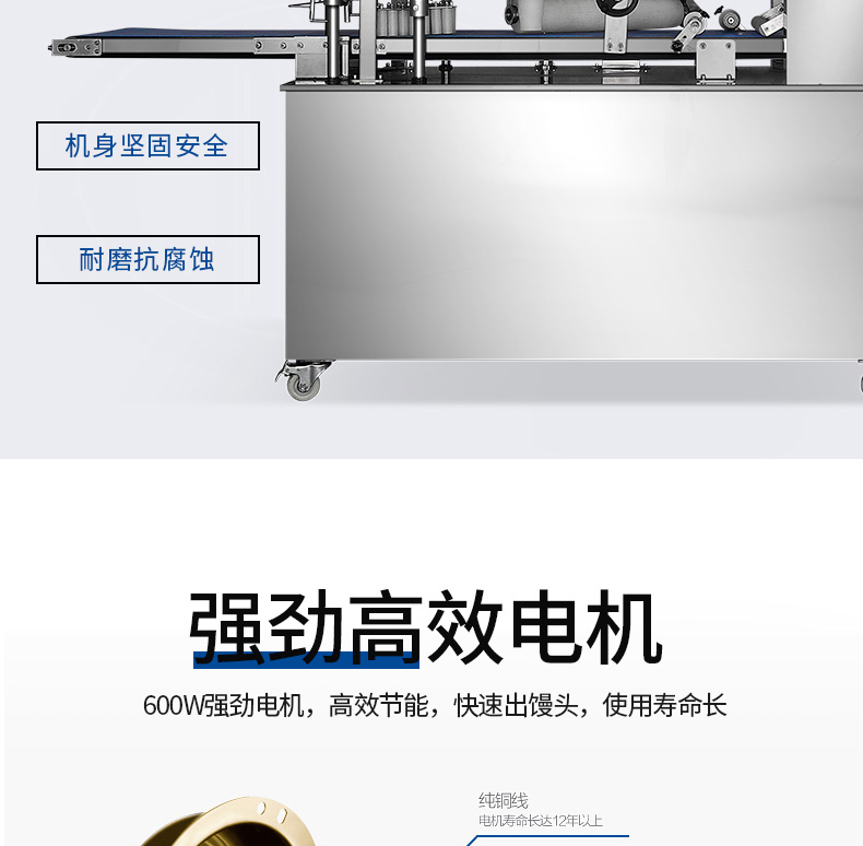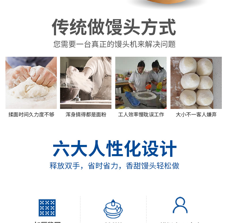 本機(jī)對(duì)面粉質(zhì)量要求不高,適用于各種工作場(chǎng)所,工作效率相當(dāng)于12-18個(gè)工人同時(shí)手工制作饅頭,真正的低投入、高收效、節(jié)省資源。