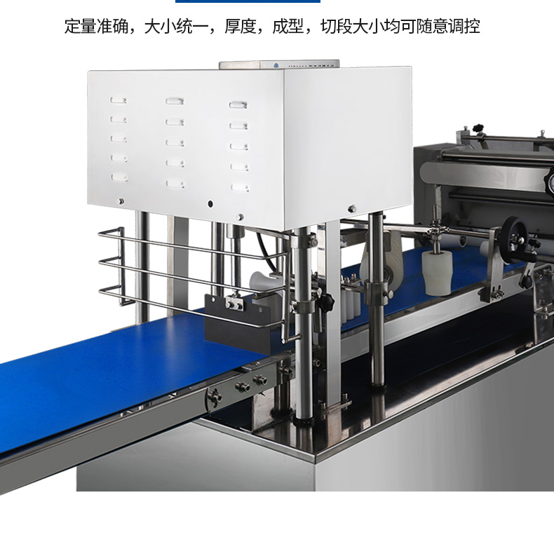 ?自動(dòng)化程度高,定量準(zhǔn)確,制品大小統(tǒng)一,饅頭面帶厚度、成型、切段大小均可隨意調(diào)控;