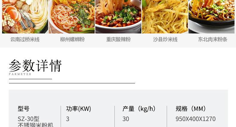SZ-30不銹鋼米粉機,可生產(chǎn)米粉、米線、桂林米粉、過橋米線、年糕、糍粑等產(chǎn)品。各種形狀都可生產(chǎn)(圓、扁),加工食品外表光滑,厚薄、寬窄、粗細均勻可調(diào),筋軟適度,有彈性,口感柔軟、味道純正。