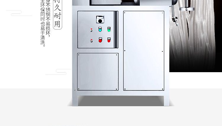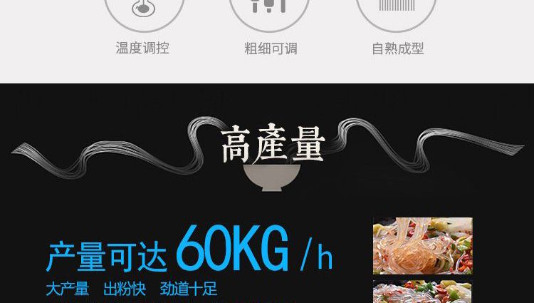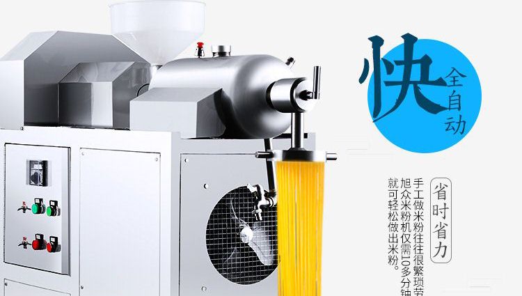 改進(jìn)型米粉、米線專用機(jī),裝有自動溫空裝置,整個(gè)生產(chǎn)過程設(shè)備均在恒溫狀態(tài)下運(yùn)行,自動化程度高,操作簡單,l人即可生產(chǎn)??缮a(chǎn)米粉、米線、桂林米粉、過橋米線、年糕等產(chǎn)品。各種形狀都可生產(chǎn)(圓、扁),加工食品外表光滑,厚薄、寬窄、粗細(xì)均勻可調(diào),筋軟適度,有彈性,口感柔軟、味道純正。