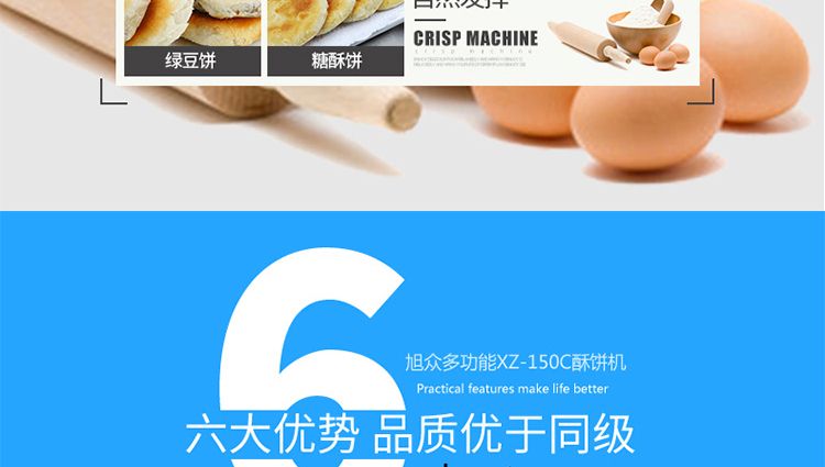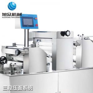 旭眾牌XZ-15C三道搟面酥餅機(jī)是我公司仿手工制作面食產(chǎn)品的機(jī)型,占地面積小,重量輕,它吸收國(guó)內(nèi)傳統(tǒng)手工制作技術(shù),即運(yùn)用搟面杖壓面和打擊面團(tuán),以保證高面筋性和面帶的密度,并綜合考慮面食的口感而研發(fā)。