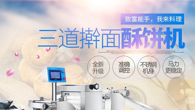 XZ-15C三道搟面酥餅機(jī),仿手工制作面食產(chǎn)品的機(jī)型,占地面積小,重量輕,運(yùn)用搟面杖壓面和打擊面團(tuán),以保證高面筋性和面帶的密度,并綜合考慮面食的口感而研發(fā)??缮a(chǎn)東北糖酥餅,東北大香酥餅,蘇式月餅,芝麻餅,鮮花餅,老婆餅。購(gòu)機(jī)免費(fèi)提供工藝技術(shù)