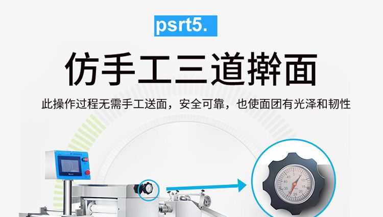 ?生產(chǎn)速度快,效率高,生產(chǎn)流程流暢,各環(huán)節(jié)都輔以電控設(shè)備控制,不會(huì)出現(xiàn)堵面,破酥等現(xiàn)象;