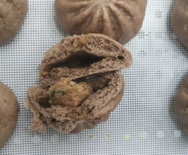 SZ-63包子機(jī)升級后SZ-612包子機(jī),那么兩者之間區(qū)別在哪里,花紋從九褶變成十二褶,客戶現(xiàn)場試機(jī)SZ-612包子機(jī)做黑米包效果如圖: