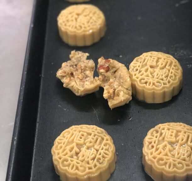 旭眾新款XZ-68多功能包餡機餡管短,管內(nèi)存料少,減小出餡壓力,有效保護餡料顆粒,使餡料更松散、產(chǎn)品重量、皮餡比例更加穩(wěn)定,適用多種餡料;中秋臨近,需求月餅機的客戶越來越多,來實地考察試機的客戶來了一批又一批,這次客戶做的五仁餡月餅,可以看得出里面的五仁餡能大顆粒包制起來,眼見為實歡迎來廠實地考察月餅機